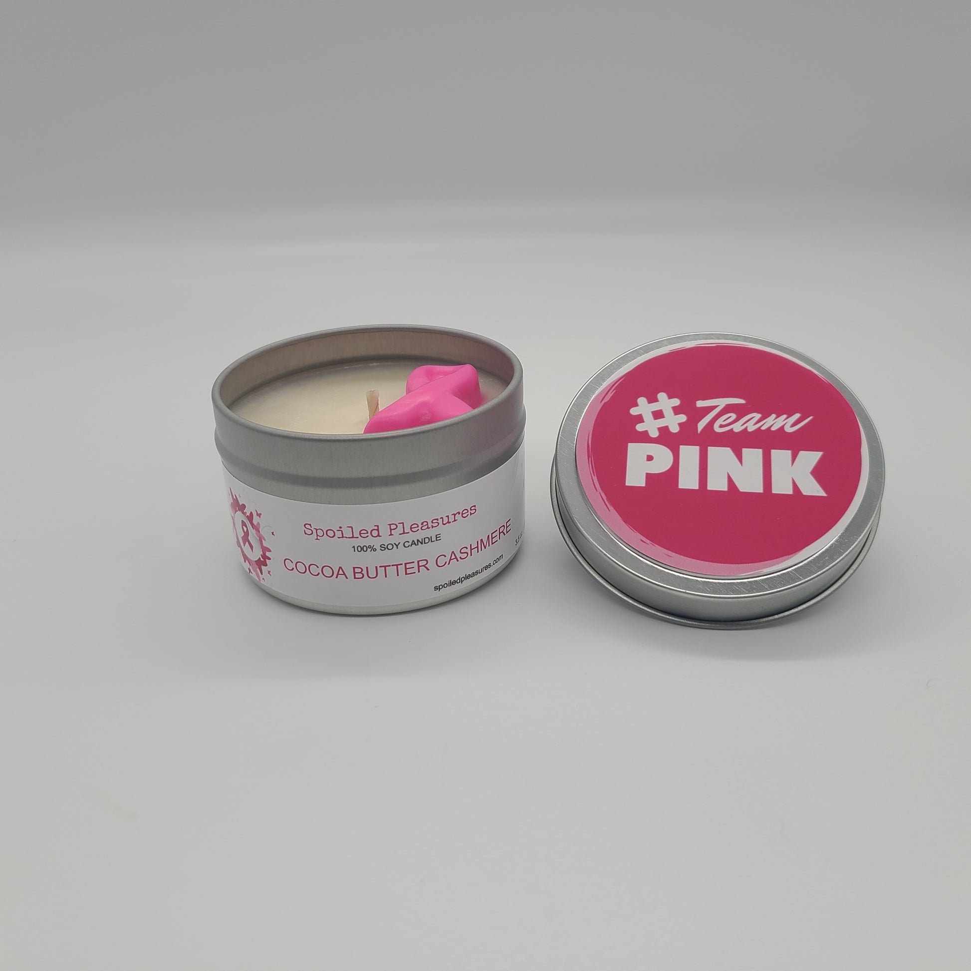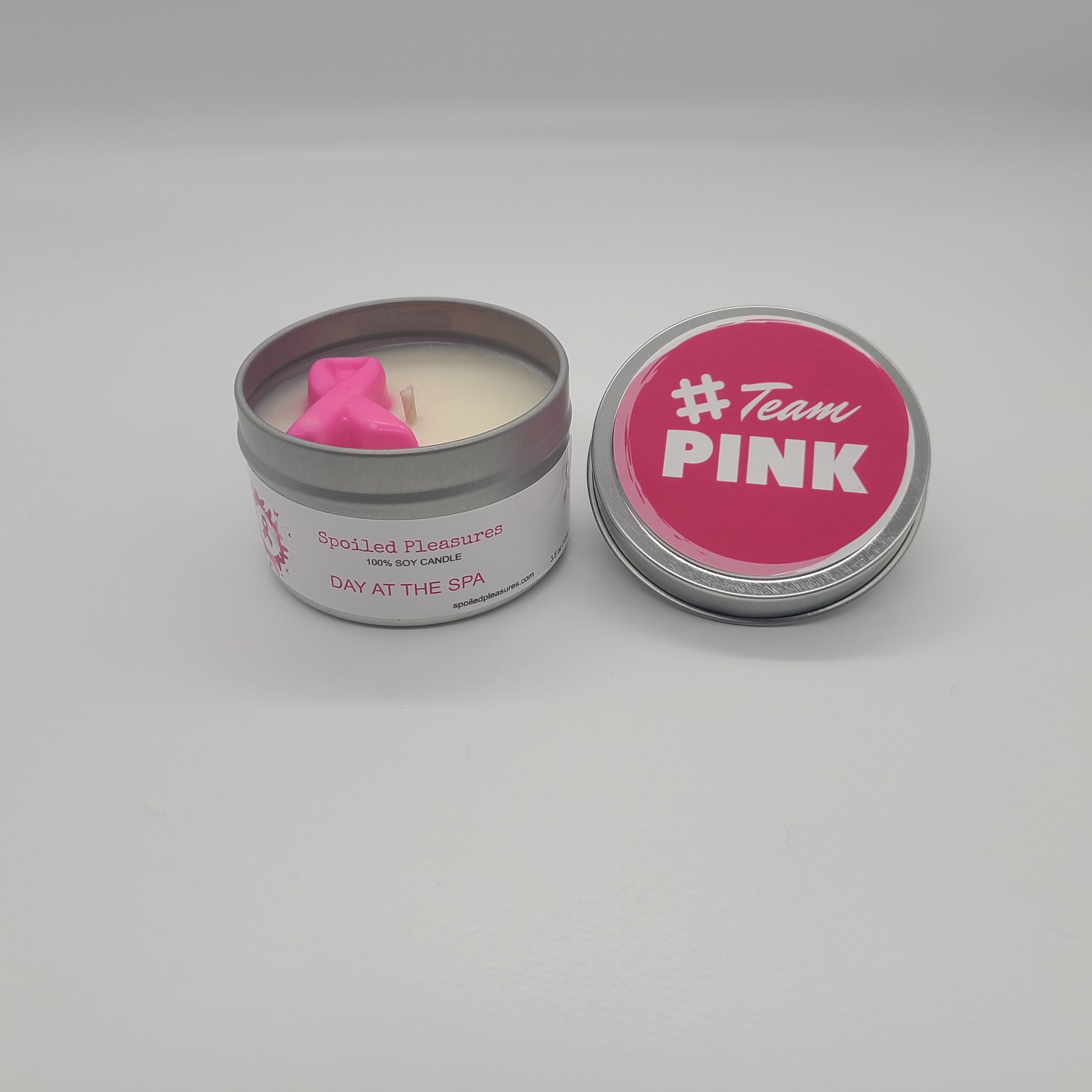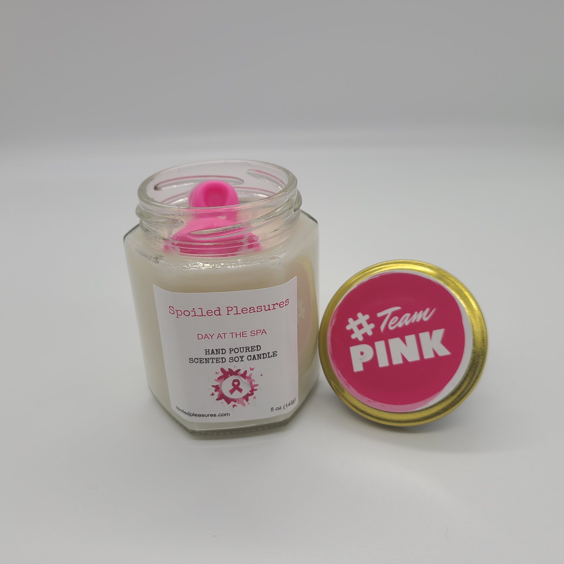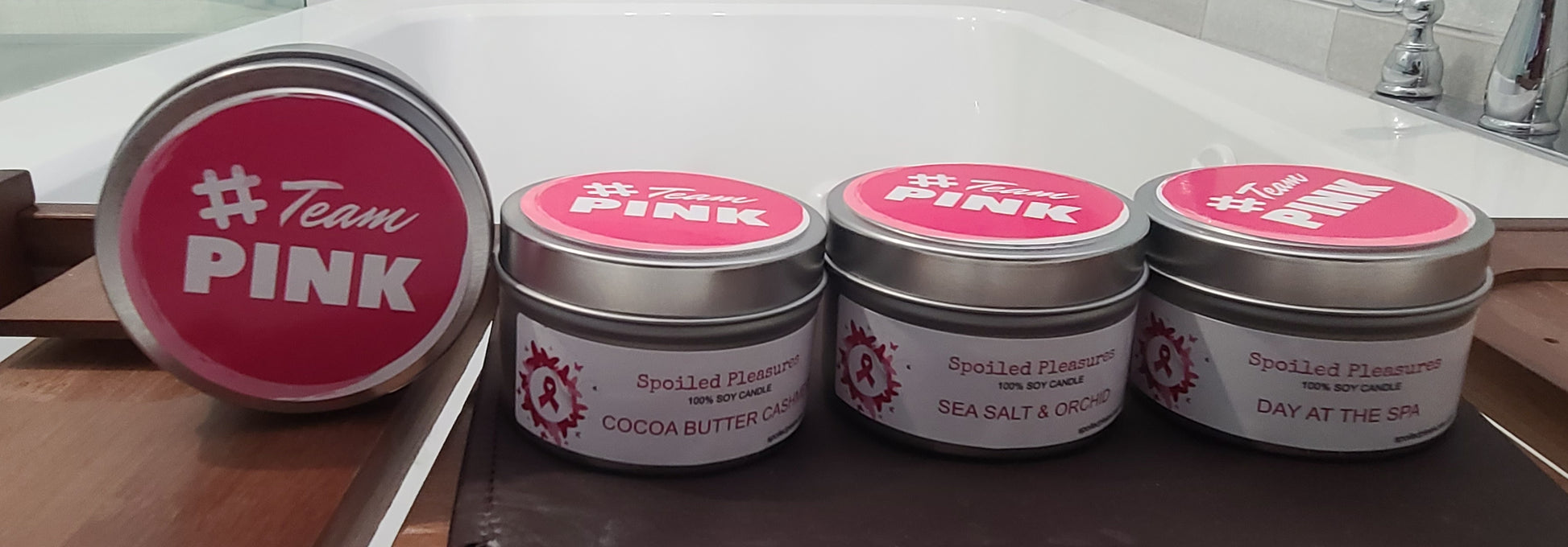 Check out our Cancer Awareness soy candles. They come in our 4oz tin or our 6oz hexagon jar and four fragrance selections. Please read the homepage to learn about our soy quality experience and burn times.